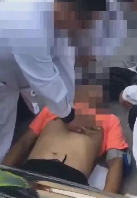 钟先生被施救的现场(图源@视频截图)▼