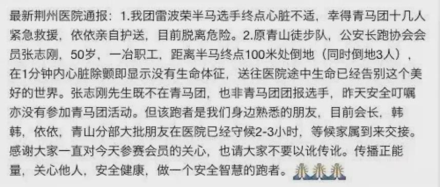 荆州医院关于荆州国际马拉松施救情况的通报(图源@网络)▼